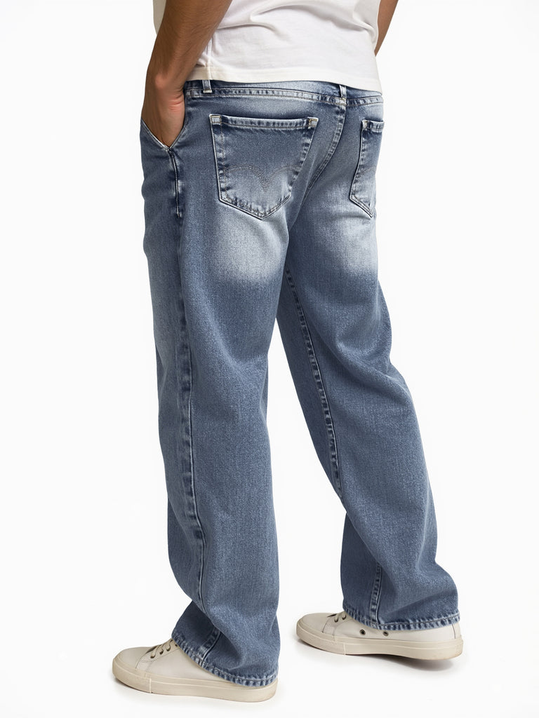Meet the ultimate everyday denim — our Straight Fit Stone Wash Jeans for men . Designed with a timeless straight cut from hip to hem, these jeans deliver a relaxed yet clean silhouette that works across styles and seasons. The stone wash effect adds a vintage edge, with natural fading through the fabric for a worn-in, retro-inspired character.