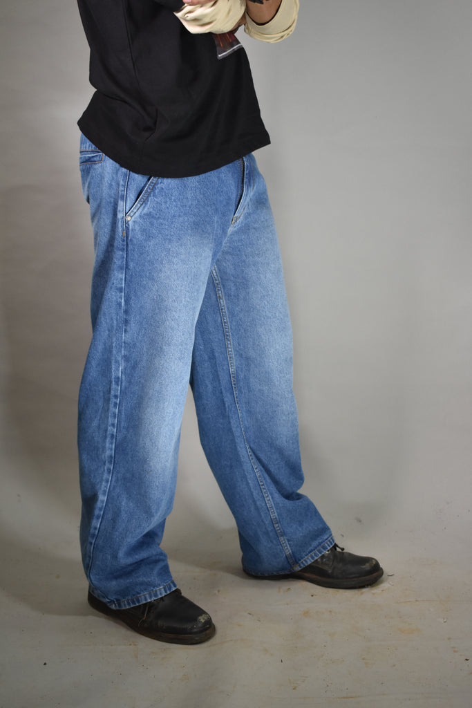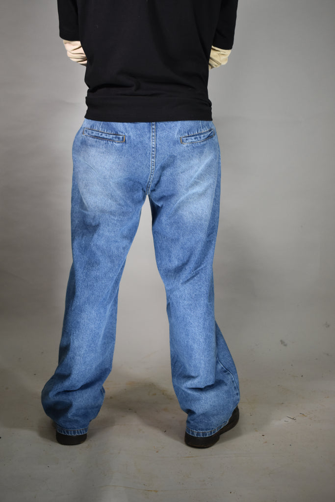 The Wide Leg Denim for men offers a relaxed fit with a straight, loose silhouette from thigh to ankle. Finished in a mid-blue vintage wash with natural fading across the thighs, it gives a lived-in character while keeping things versatile. Easy to style and comfortable to wear, this denim brings together casual ease with a classic vintage edge.