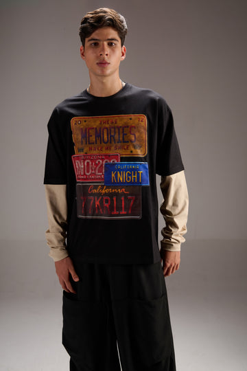 The Graphic Oversized Boxy Long Sleeve Tee blends bold streetwear energy with a relaxed, lived-in vibe. Featuring a statement front print of a car no plates. This tee stands out as an edgy piece for those who like making a visual impact. The dual tone sleeve adds charecter. .Oversized boxy fit with dropped shoulders
