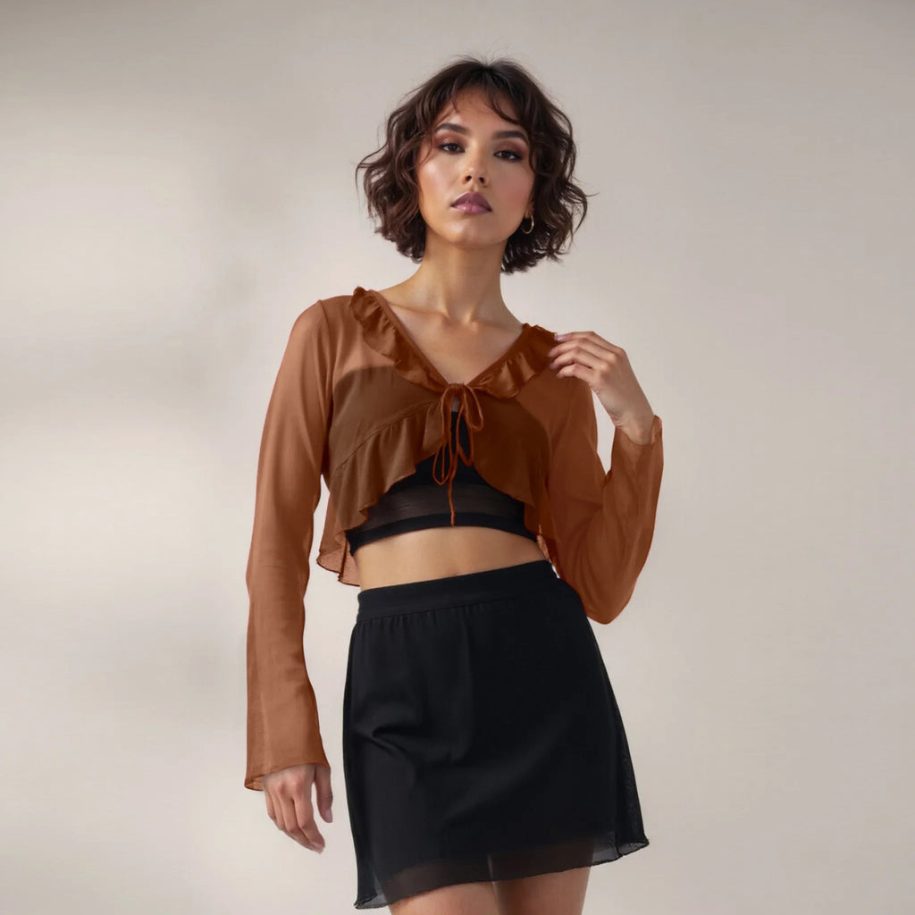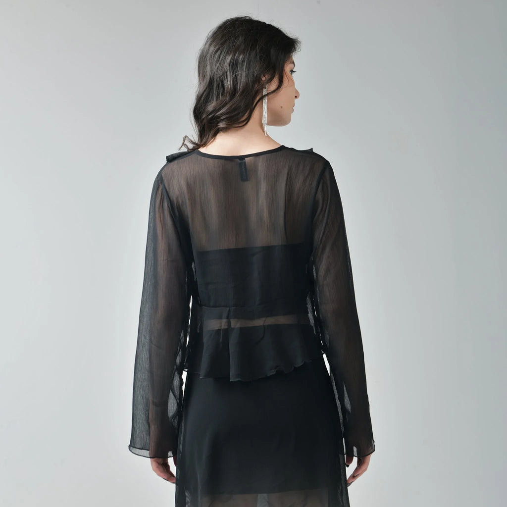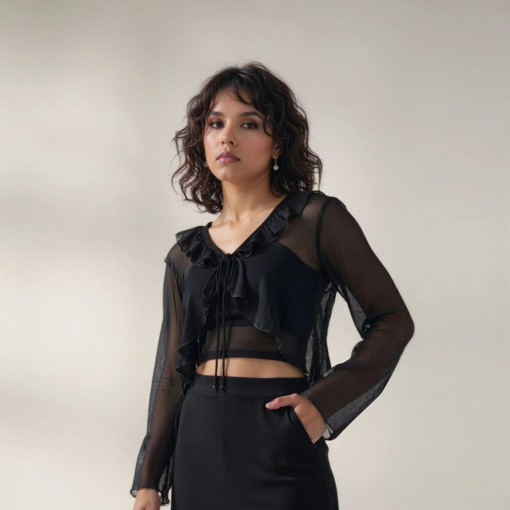 Elevate your layering game with our Ruffle Throw Combo in classic Black and earthy Brown – designed for the modern, style-savvy woman. Made from soft georgette sheer fabric, these flowy shrugs feature a front tie-up and open-front design, offering effortless layering and all-day comfort.