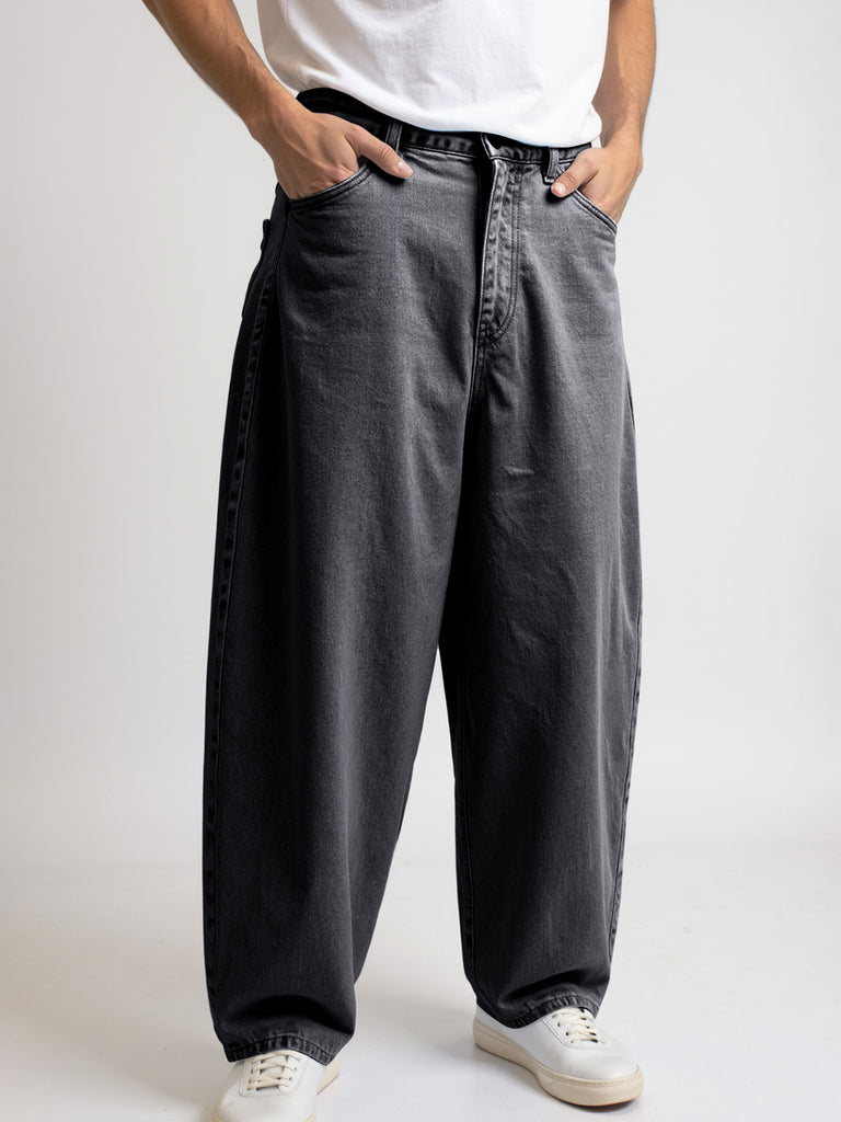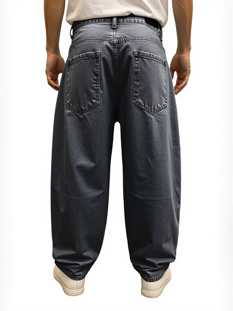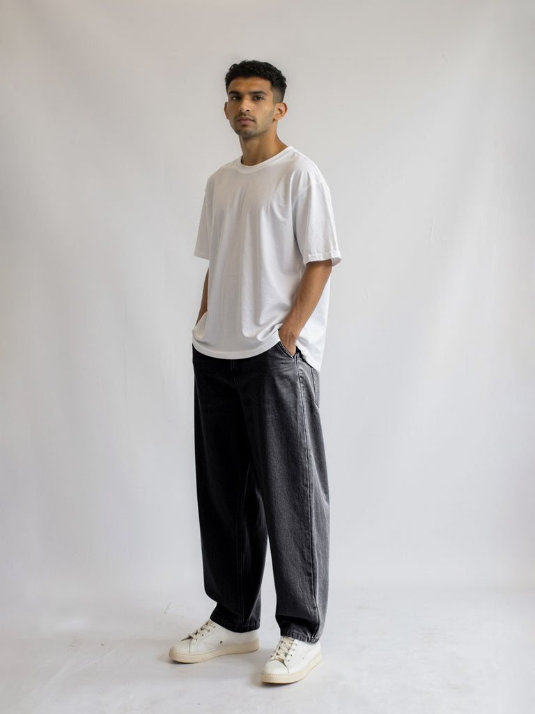 Make a bold statement with our Barrell Fit Washed Black Jeans for men, designed to merge oversized comfort with street-ready style. Featuring a voluminous elephant-leg silhouette, these jeans are cut wide through the hip and thigh with a subtle taper at the ankle, giving them a modern balloon shape. The stone washed black finish adds depth and texture, offering a vintage-inspired edge that pairs effortlessly with contemporary fits.
