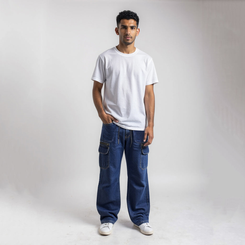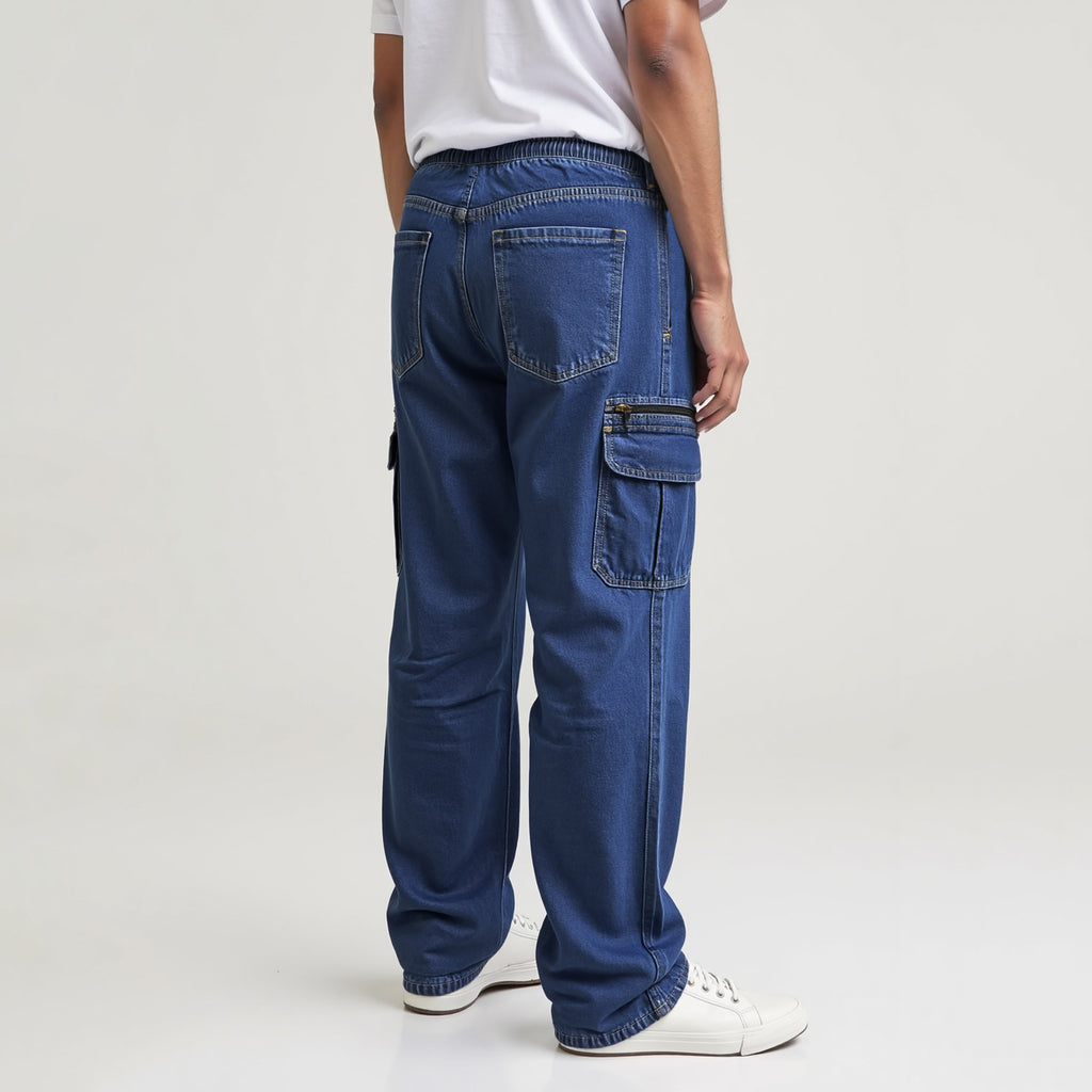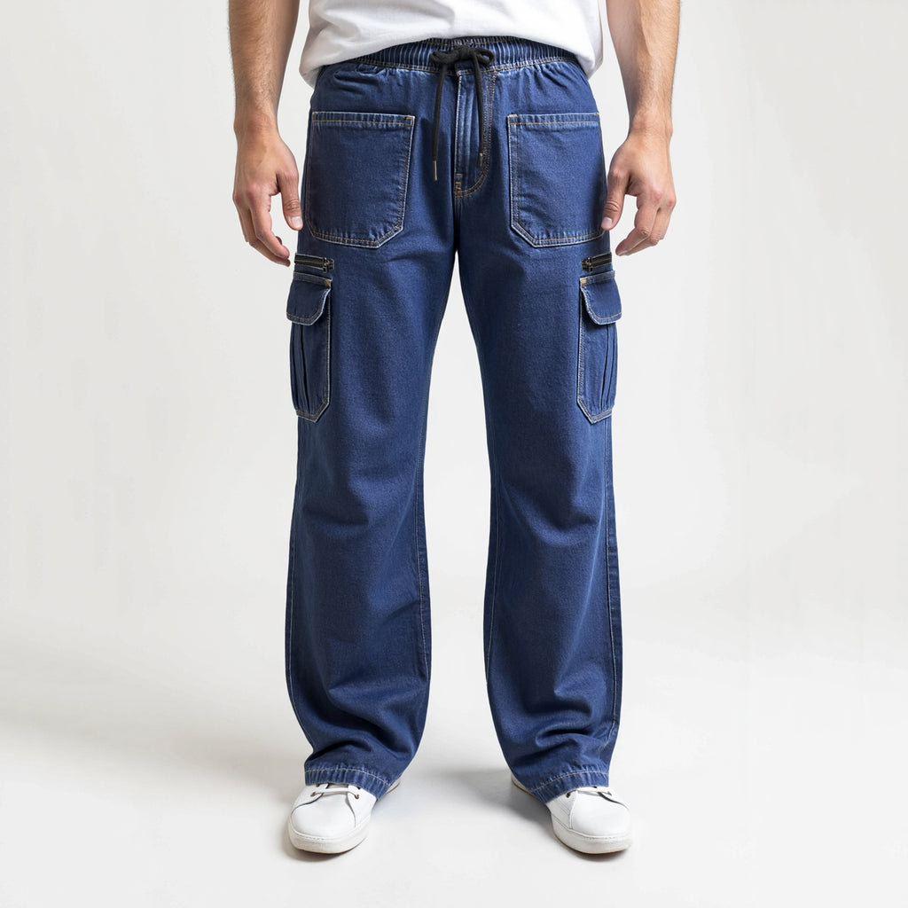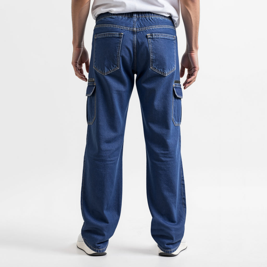 The Utility blue Cargo Jogger for men combines rugged utility details with the ease of jogger styling. Featuring an elastic waistband with adjustable drawstring and elasticated cuffs, it delivers a relaxed fit designed for everyday comfort. The mid-blue stone wash adds a vintage character, while patch pockets and seam detailing across the legs highlight its workwear inspiration.