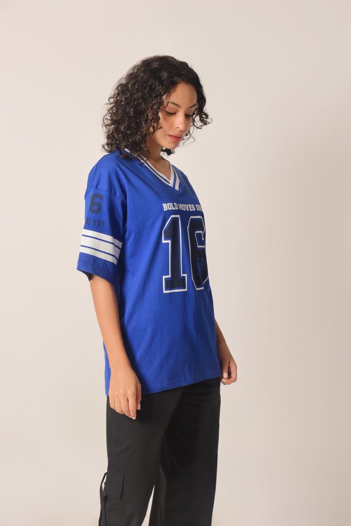 No- 16" Oversize Varsity Blue T-shirt for Women