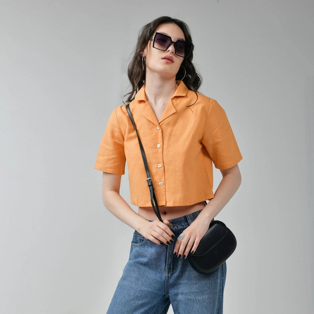 Embrace the cropped trend with the IZF Orange Crop Boxy Shirt! This on-trend shirt boasts a relaxed, boxy fit and a trendy cropped length.