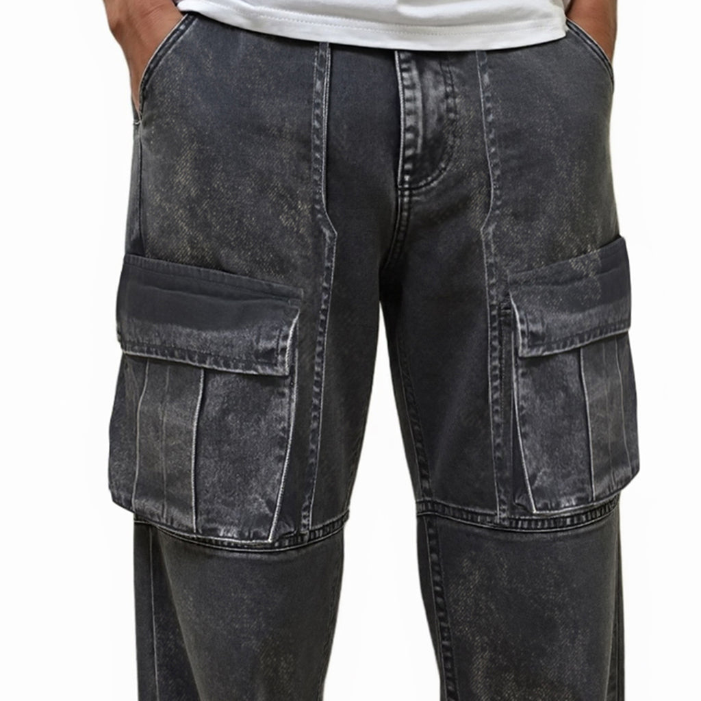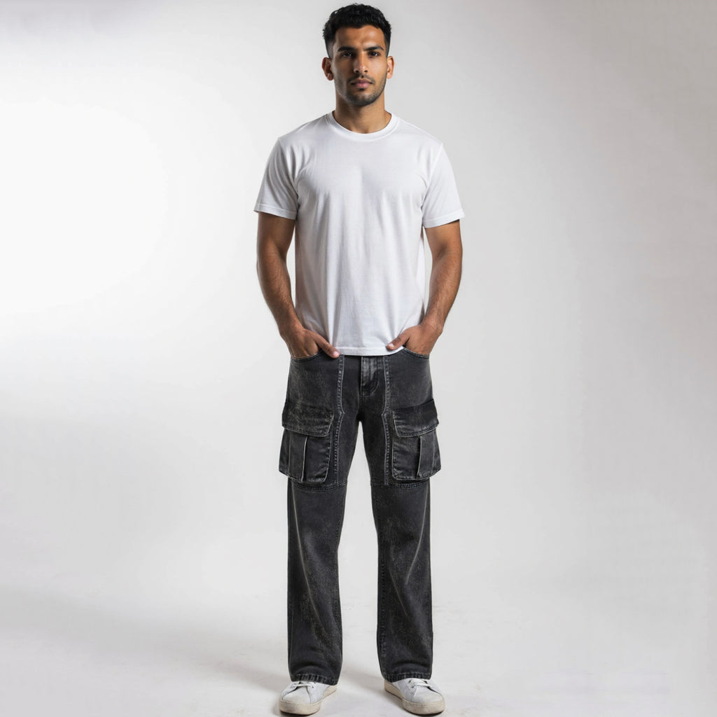 A fresh spin on utility denim, these Washed Grey Denim Cargo Pants for men blends street-ready style with everyday comfort. Designed in a straight fit, the pants feature a distinctive washed grey finish that adds depth and a lived-in character. Oversized flap cargo pockets at the thighs give them a utilitarian edge while keeping them highly functional.