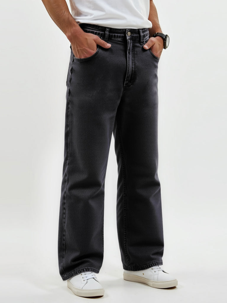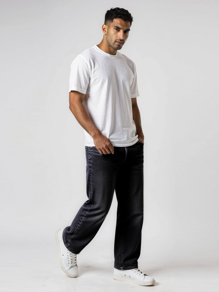 Clean, minimal, and versatile—our Wide Leg Black Jeans for men brings structure with a relaxed edge. Designed with a straight cut from hip to hem, they give you a roomy fit that’s effortlessly comfortable yet sharp. The salt and pepper adds a sleek finish, making this pair easy to dress up or down.