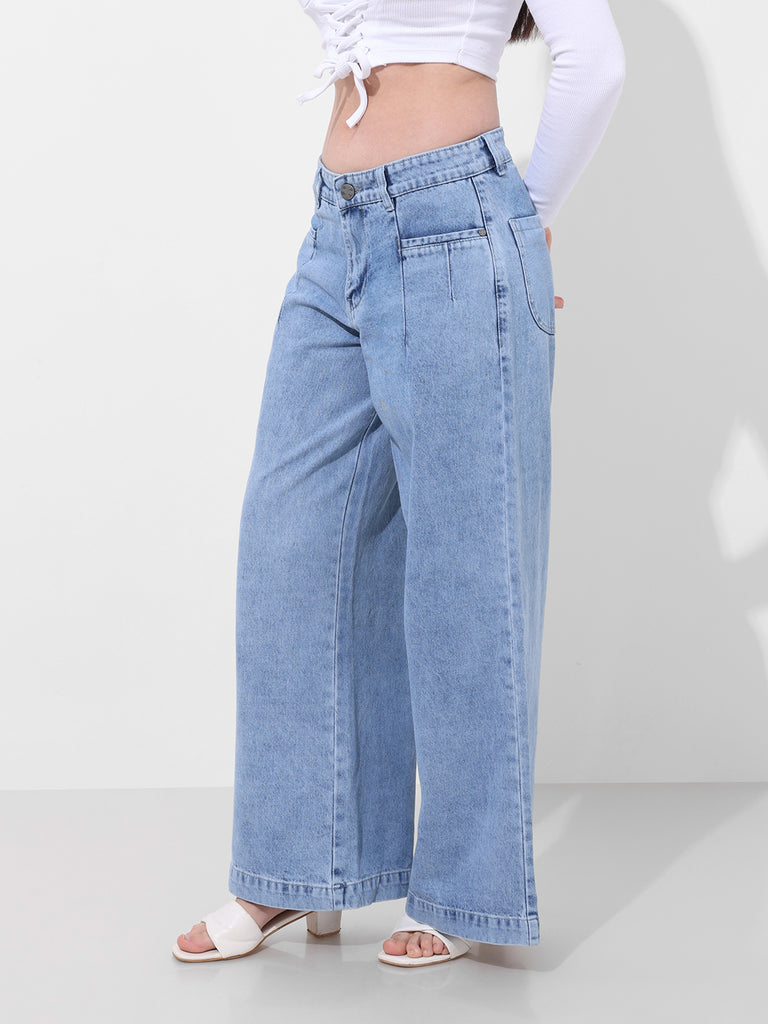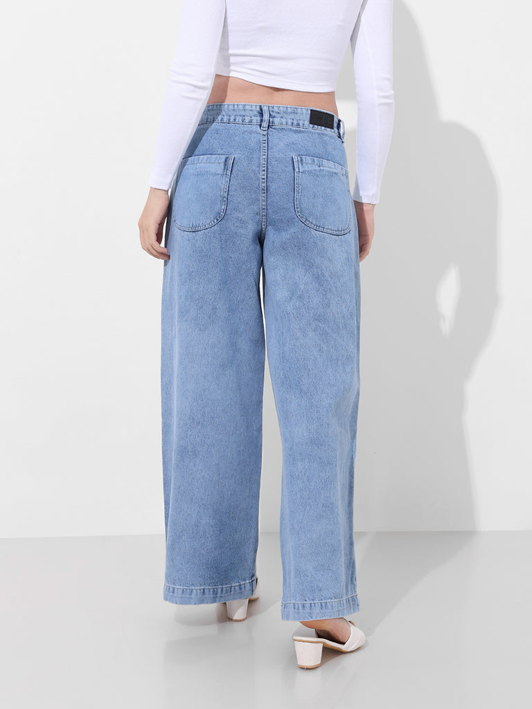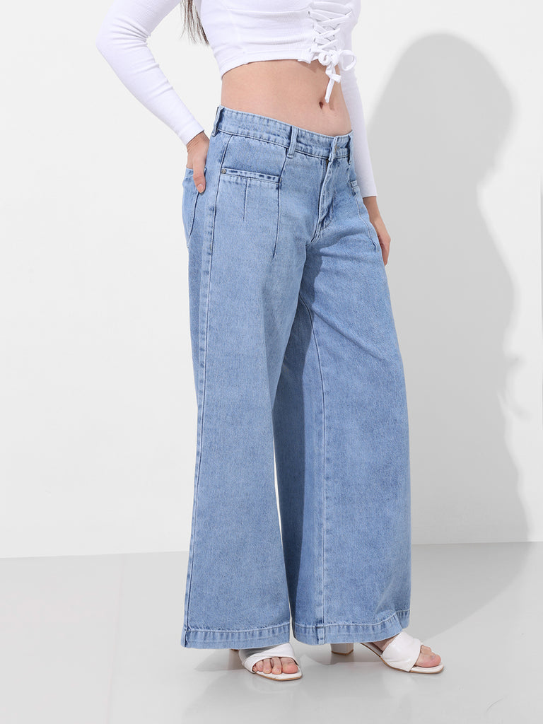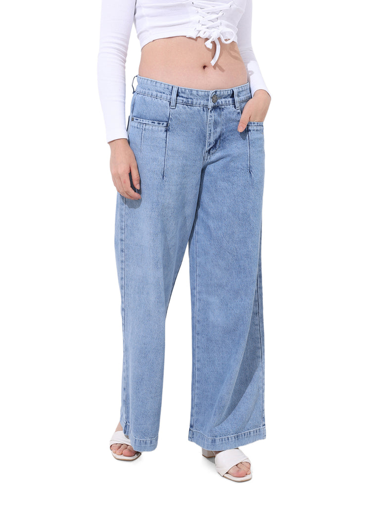 Where classic tailoring meets streetwear ease — the Pleated Wide-Leg Jeans for women feature a dramatic oversized silhouette with soft pleats at the waist that add structure and flow. Designed in a light blue vintage wash, these jeans deliver volume through the leg while maintaining a clean, elevated look.