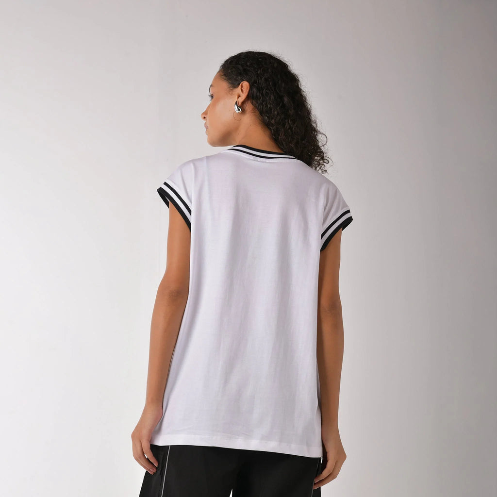 • Athletic Aesthetic: Ribbed collar and sleeves channel a true courtside vibe.