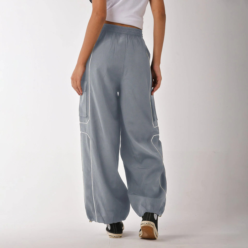 Bottom: Grey Piping Cargo Joggers